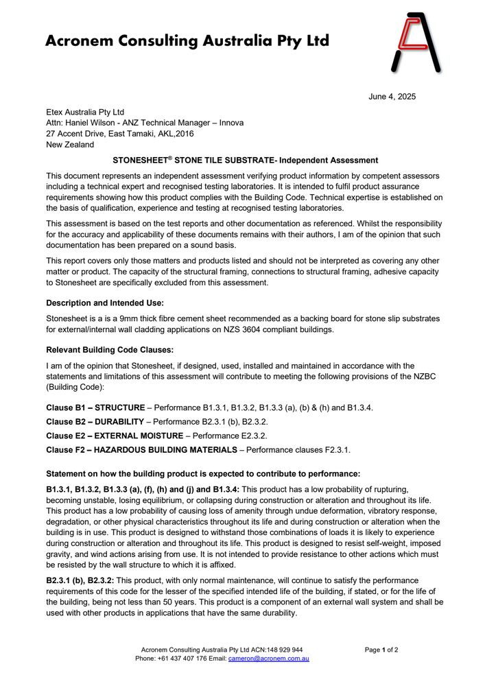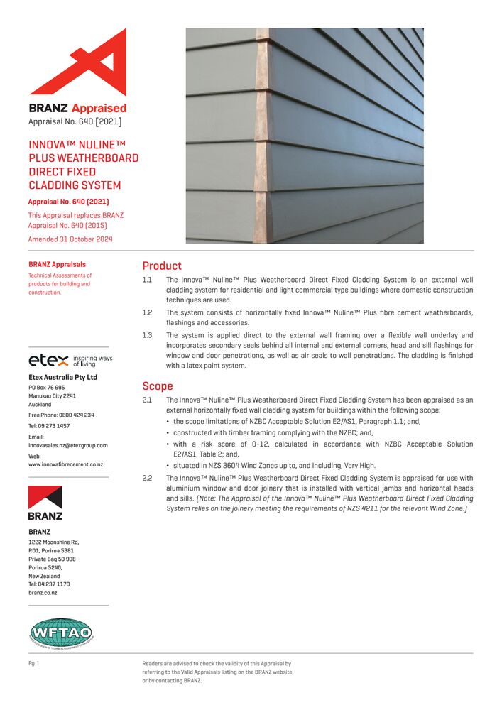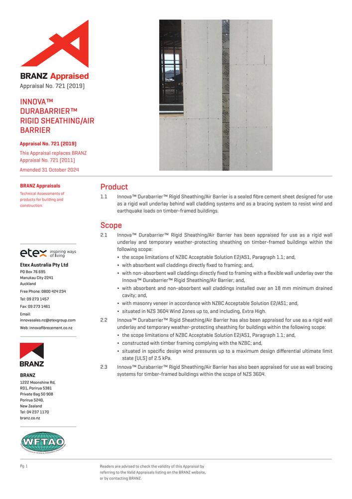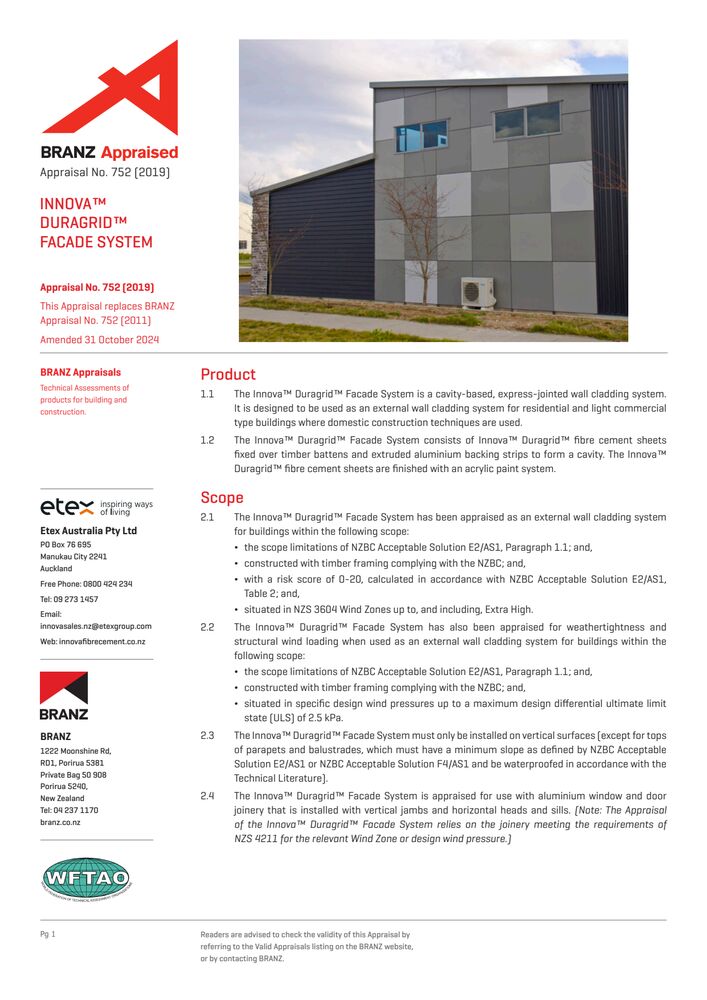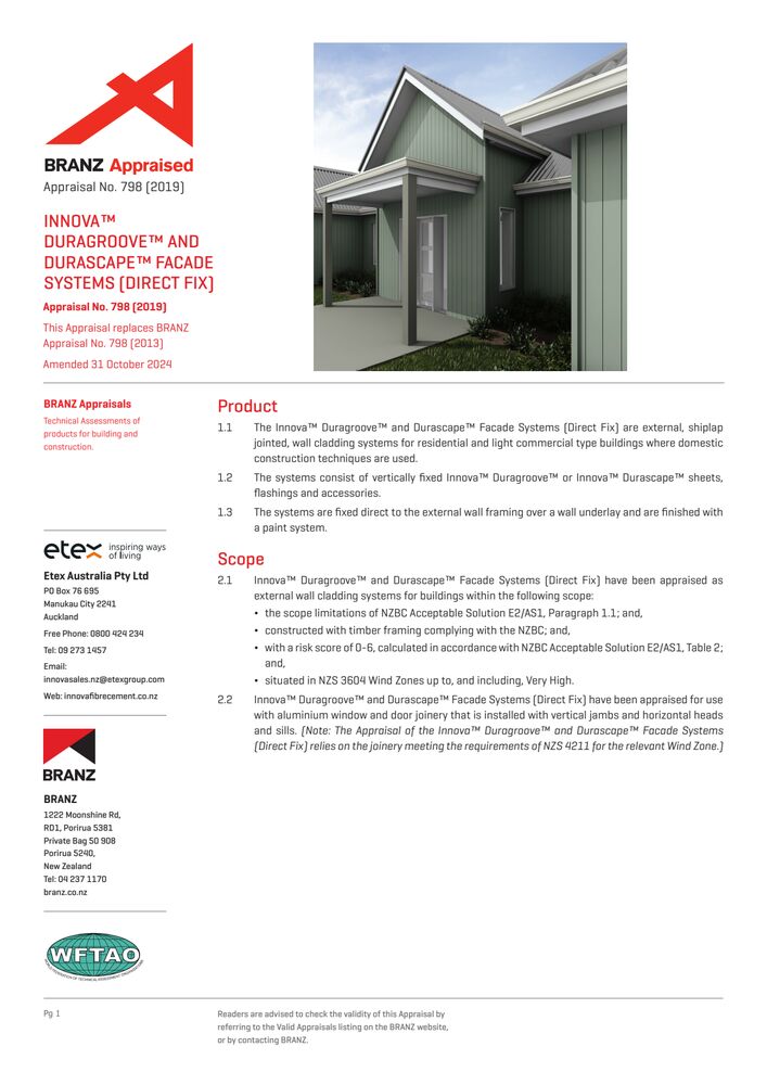 Duragroove & Durascape Direct Fixed BRANZ Appraisal - 798 2019 Certificates Duragroove & Durascape Direct Fixed BRANZ Appraisal - 798 2019