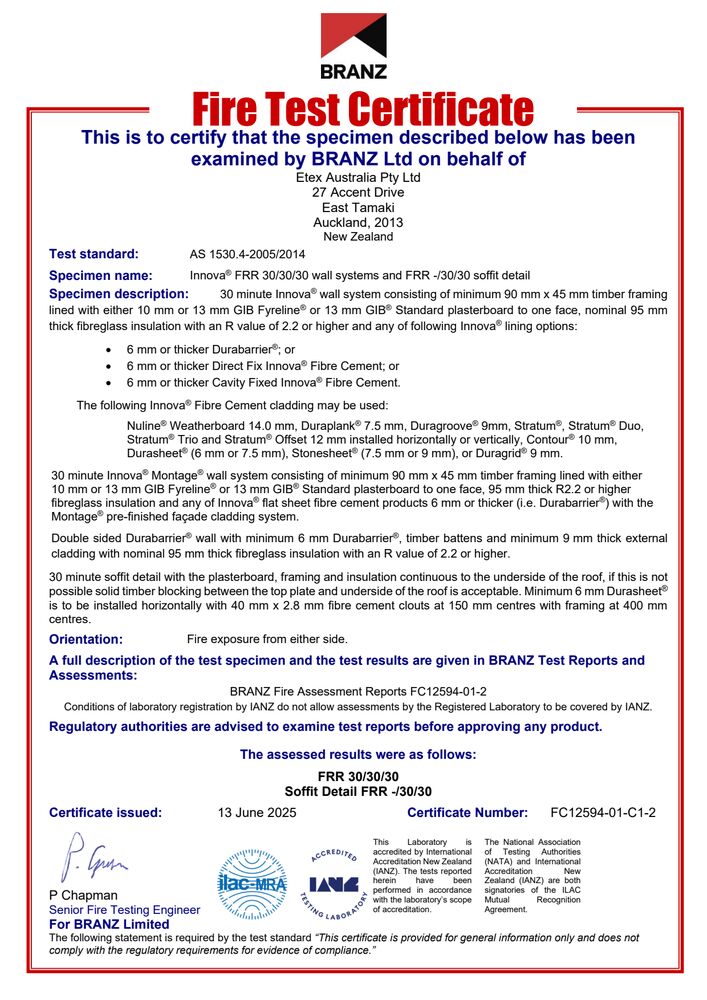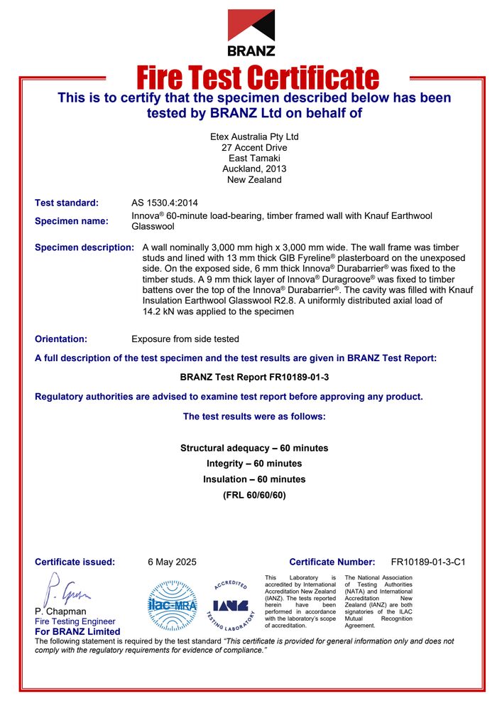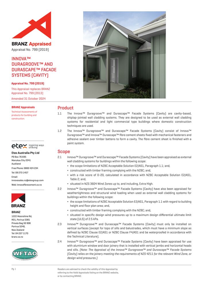 Duragroove & Durascape Cavity BRANZ Appraisal 799 2019 Certificates Duragroove & Durascape Cavity BRANZ Appraisal 799 2019